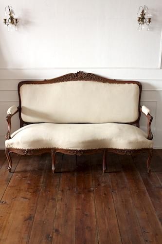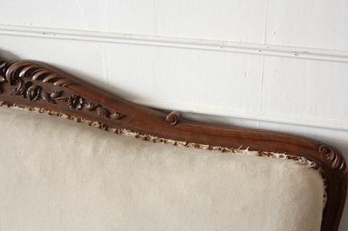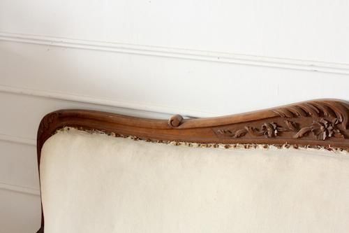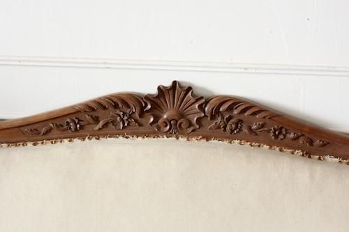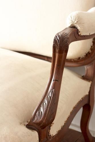 背もたれ、肘掛け、脚など木製フレーム部分の植物モチーフの細工が品がありとても素敵です