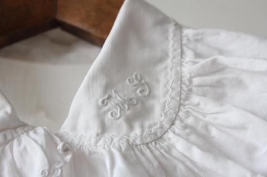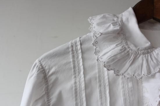 フリル状の襟と袖口、前立てが非常に愛らしいコットンシャツです