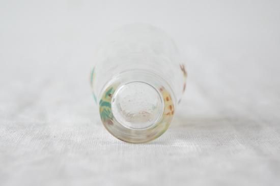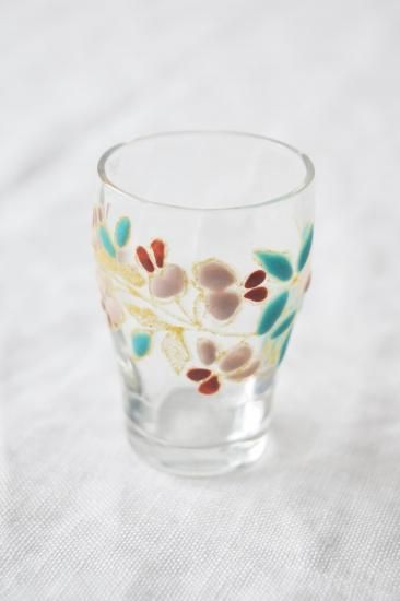 ぷっくりと盛り上がったカラフルな絵付が愛らしいミニグラス