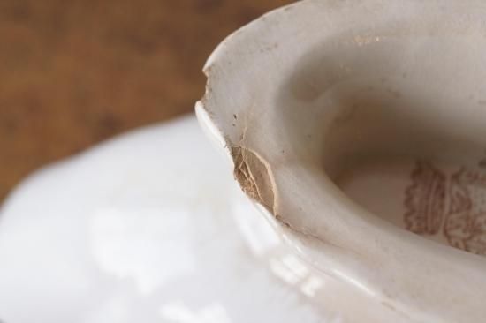内外部に貫入、シミが見られるほか