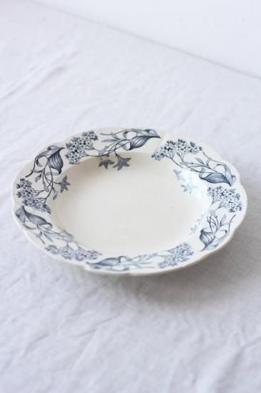 青花柄の絵付スープ皿A