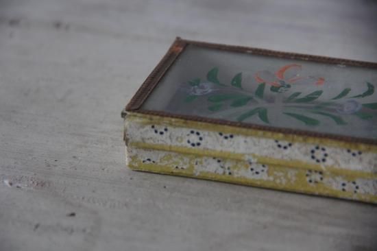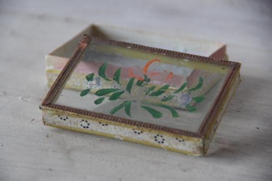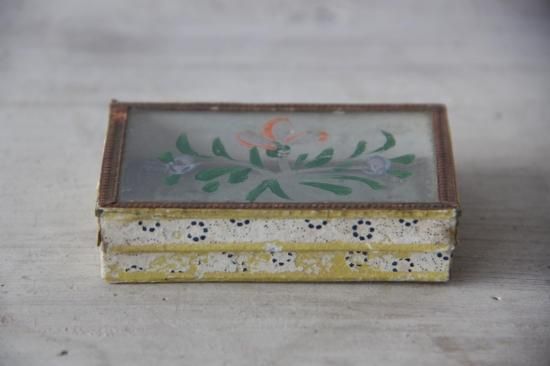 ガラス板に手描きのペイントが施された蓋は非常に味があります