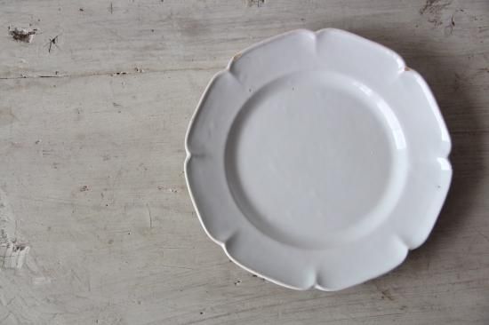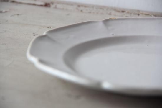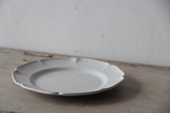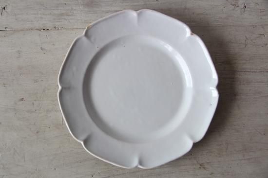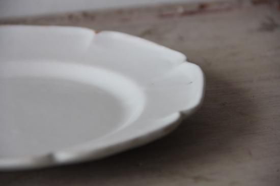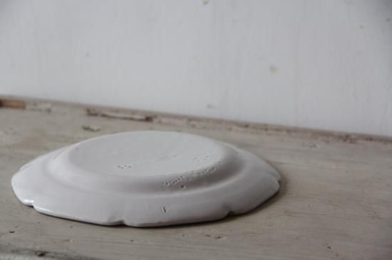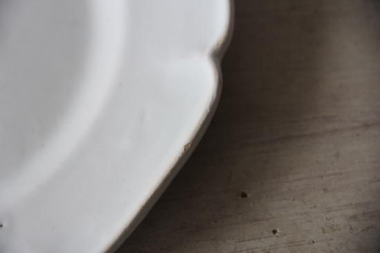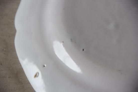 エナメルのような釉薬の質感が美しいムスティエの花リム皿