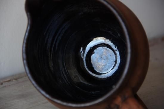 内側には濃色の釉薬が掛かっており、水を溜めておくことができます