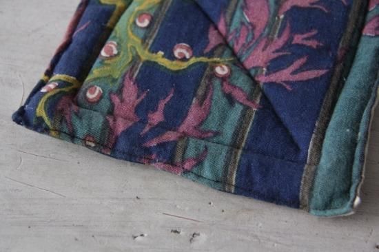 ダークトーンの生地をシンプルなキルティングで仕立ててあります