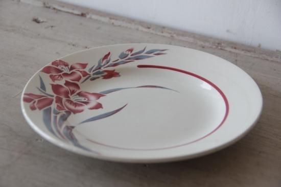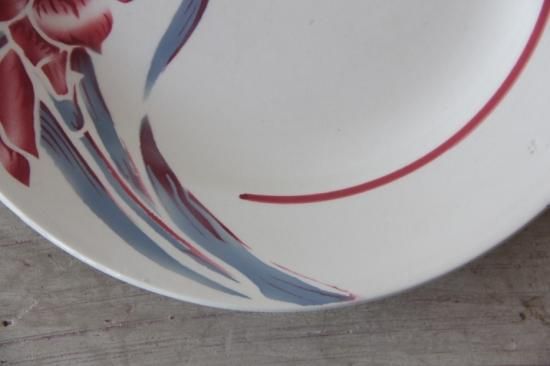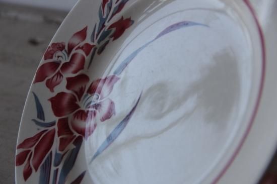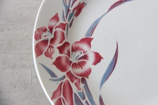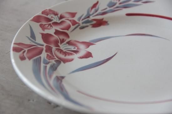 リムから見込にかけて大胆な花の絵柄が描かれたお皿