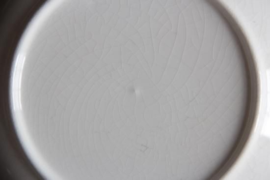 こちらはお皿同士がくっつかないよう焼く時に耐火性の道具を皿同士の間に入れた跡になります