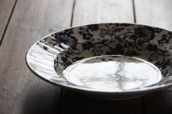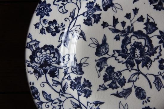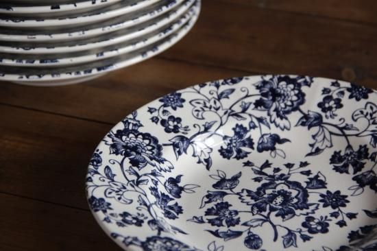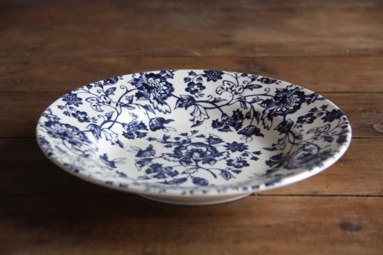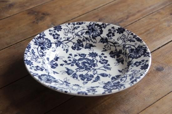 紺色に近い暗めのブルーで大胆に絵付されたスープ皿
