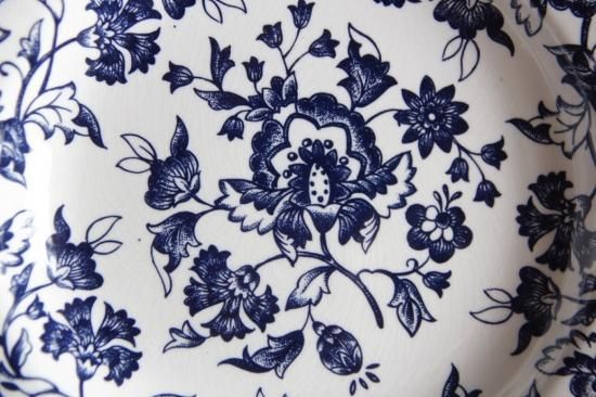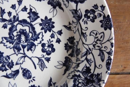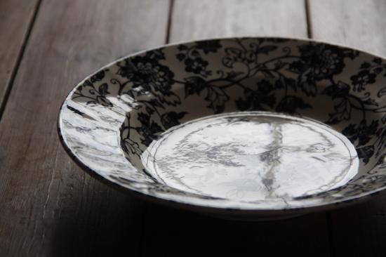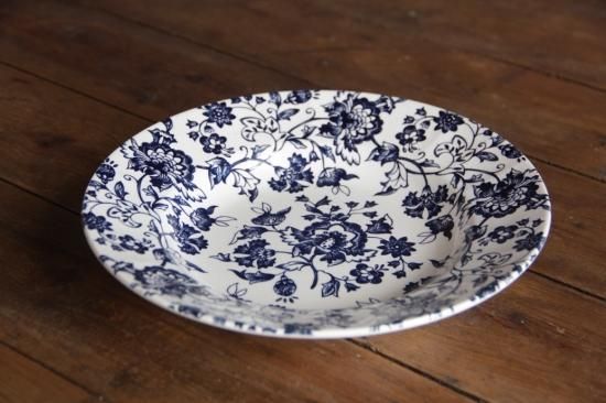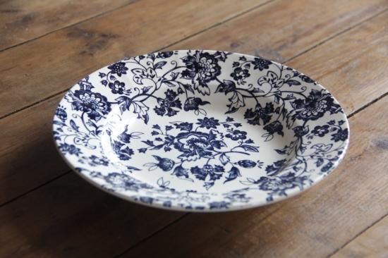 紺色に近い暗めのブルーで大胆に絵付されたスープ皿
