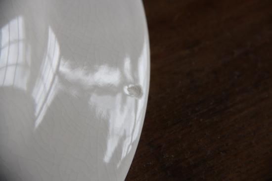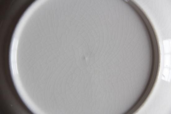 こちらはお皿同士がくっつかないよう焼く時に耐火性の道具を皿同士の間に入れた跡になります
