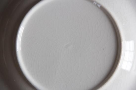 こちらはお皿同士がくっつかないよう焼く時に耐火性の道具を皿同士の間に入れた跡になります