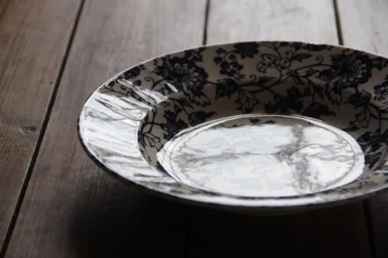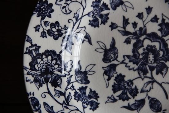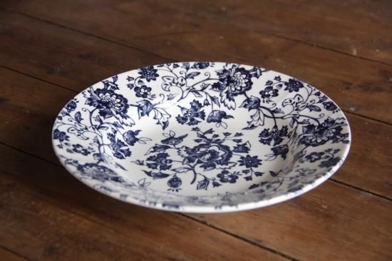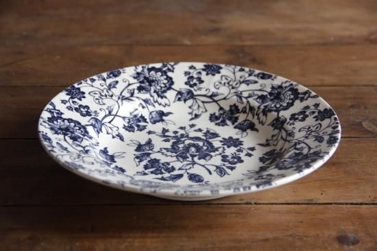 紺色に近い暗めのブルーで大胆に絵付されたスープ皿