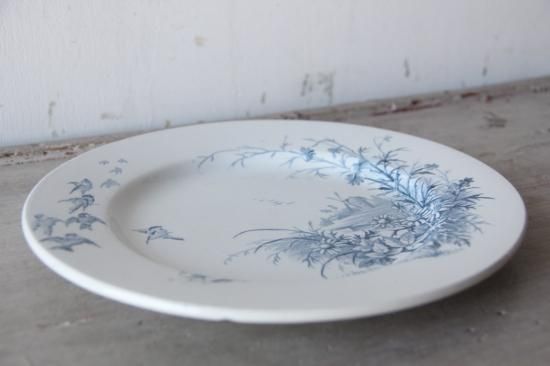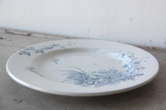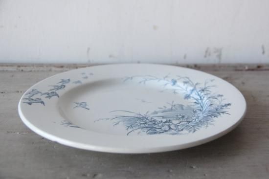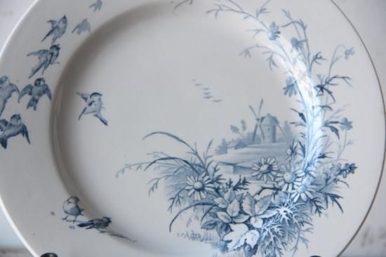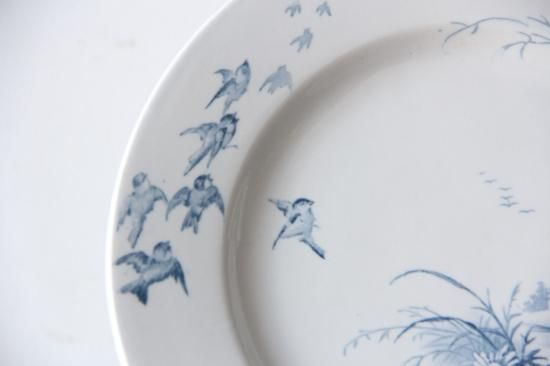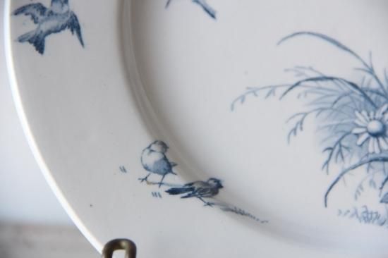 ベースの白に、青色の植物柄、小鳥柄が映えます
