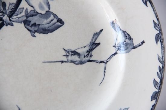 花と小鳥の絵柄が落ち着いた紺色で描かれています