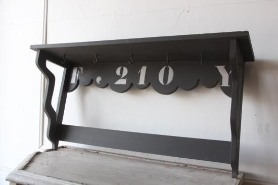 フランスアンティーク  グレーの壁取付棚(フック付き)
