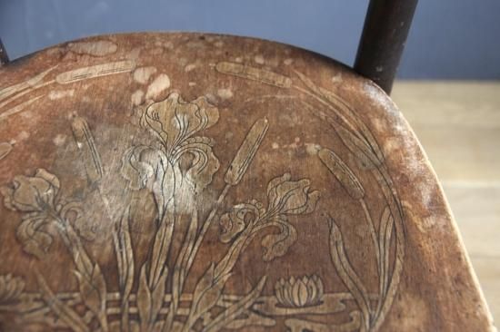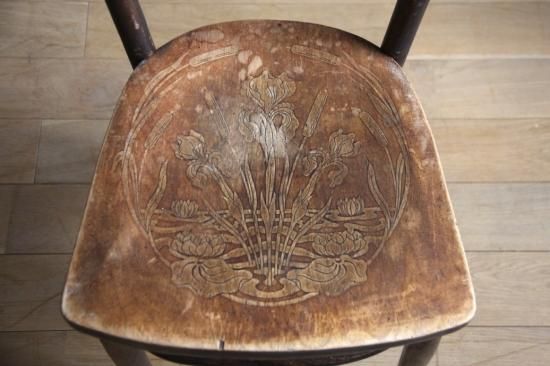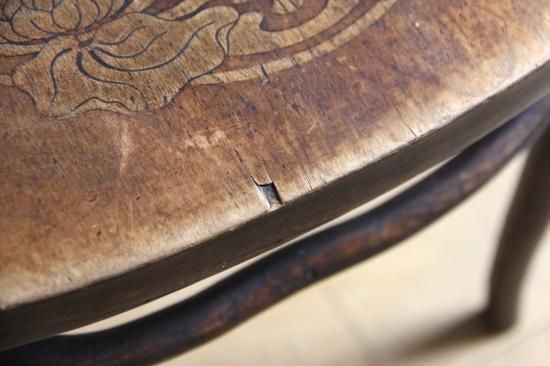 座面に描かれた花の彫り絵が素朴ながらエレガントさを感じさせ魅力的です。安定感のある丈夫な作りになっていますので、是非お家で日常使いいただきたいお品。