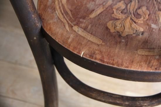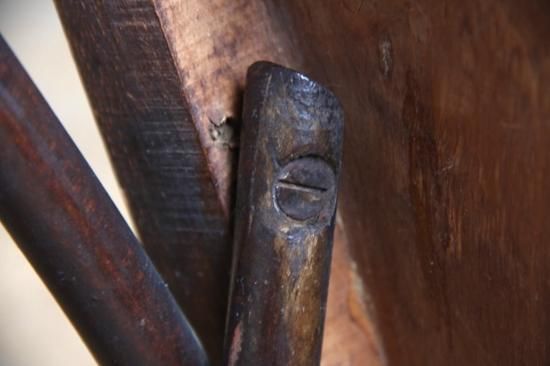 所々スレやシミにより木本来の色がでている箇所があります。アンティークの風合いとして、とても雰囲気のある表情になっていて素敵です。