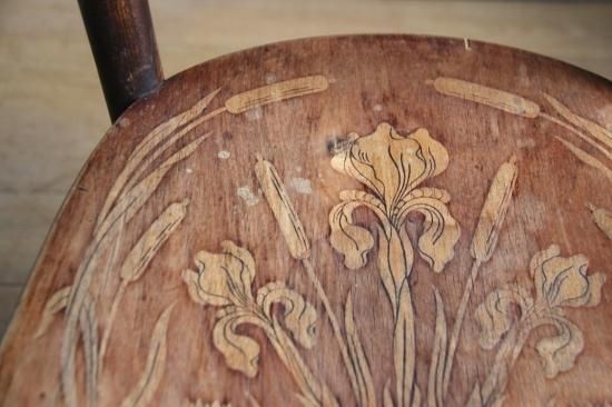 座面に描かれた花の彫り絵が素朴ながらエレガントさを感じさせ魅力的です。安定感のある丈夫な作りになっていますので、是非お家で日常使いいただきたいお品。