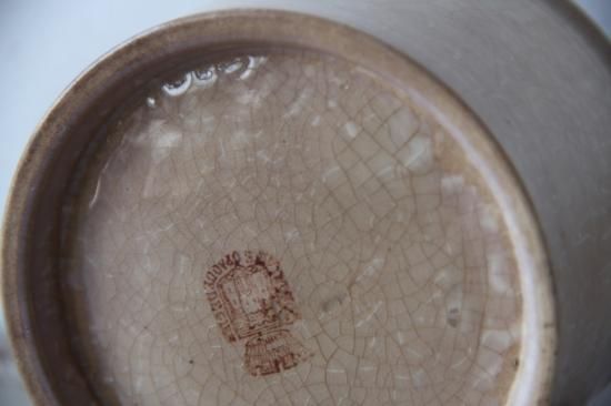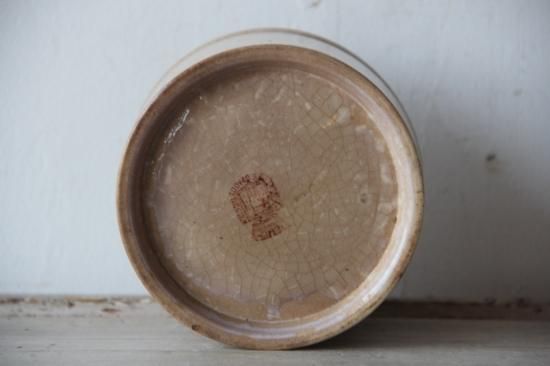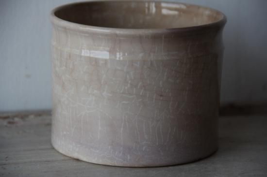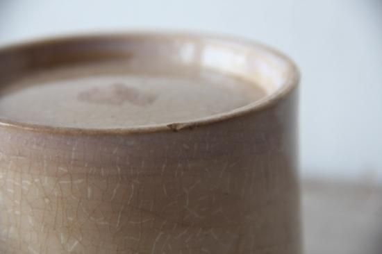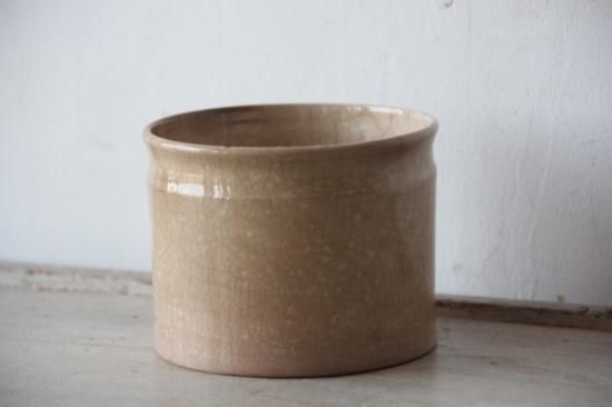 元はエクリュ色のポットが、経年使用による風合いを伴いベージュ色に染まっています