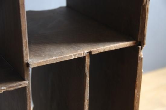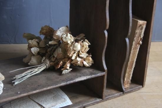 会社や学校などの施設で書類等を収納するのに使われていた棚です。随所にみられる棚板の装飾にフランスらしいエレガントな装いを感じます。とても雰囲気のある品なので、お家のインテリアに店舗什器にオススメです。どんな物を飾ろうか収納しようか考えるのが楽しくなる様な棚ですよ。
