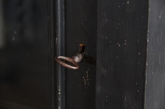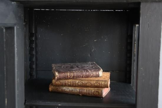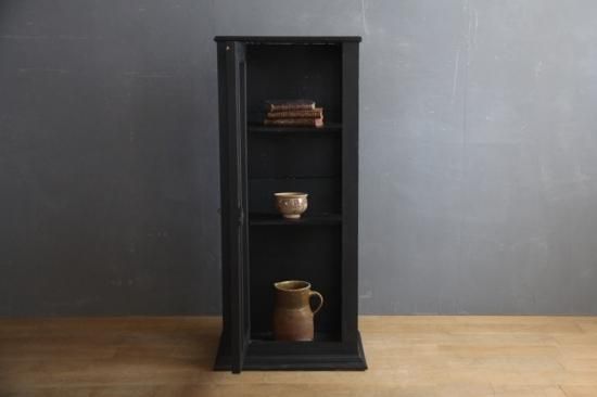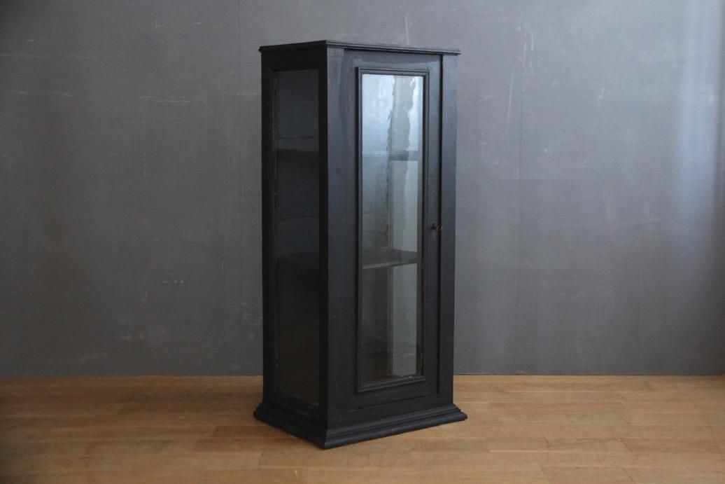 フランスで使われていたアンティークのガラス扉キャビネット。黒のペイントが施されています。