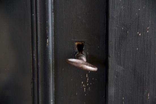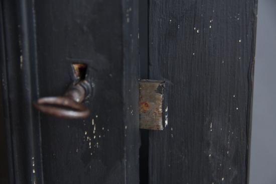 フランスアンティーク 黒ペイントのガラス扉キャビネット