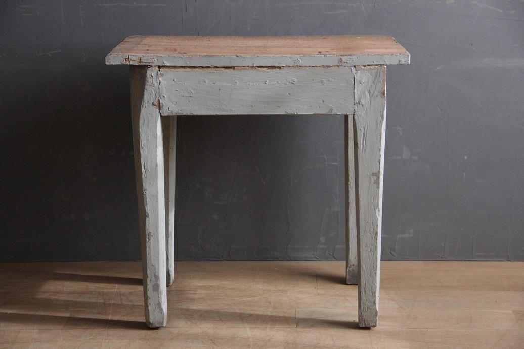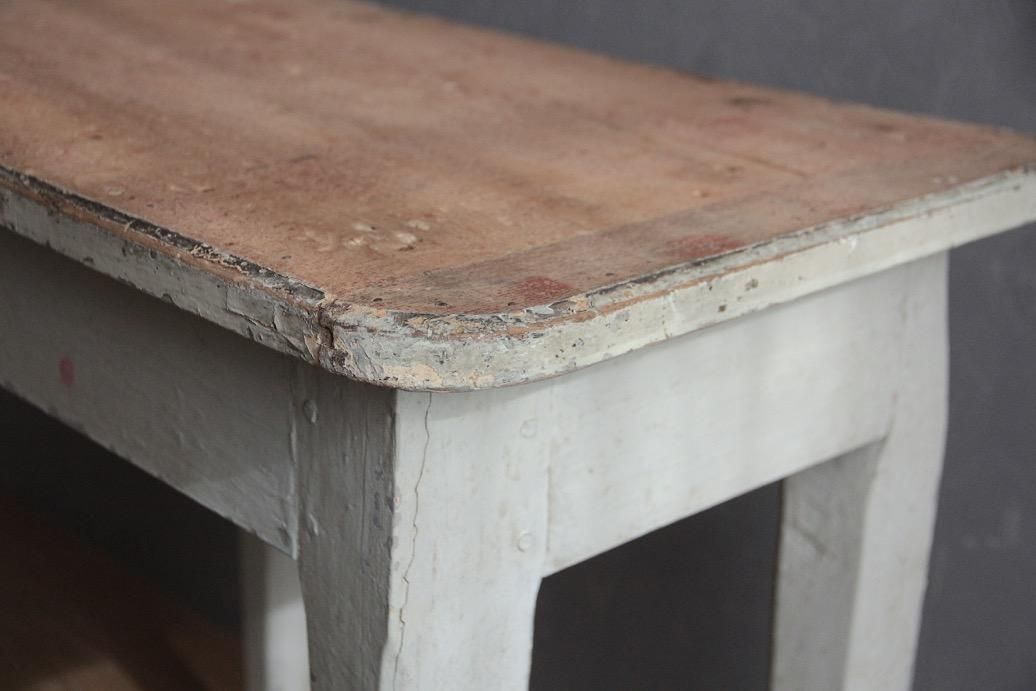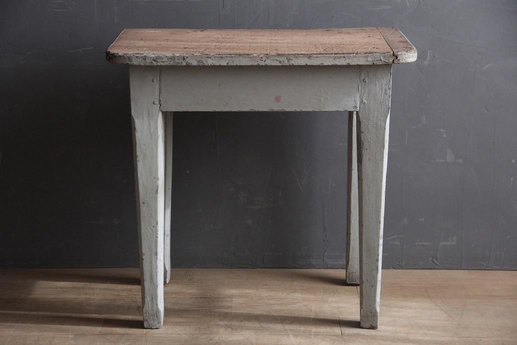 どっしりとした素朴な佇まいが愛らしいお品。脚や天板の優しく淡い色のペイントも可愛らしいですね。