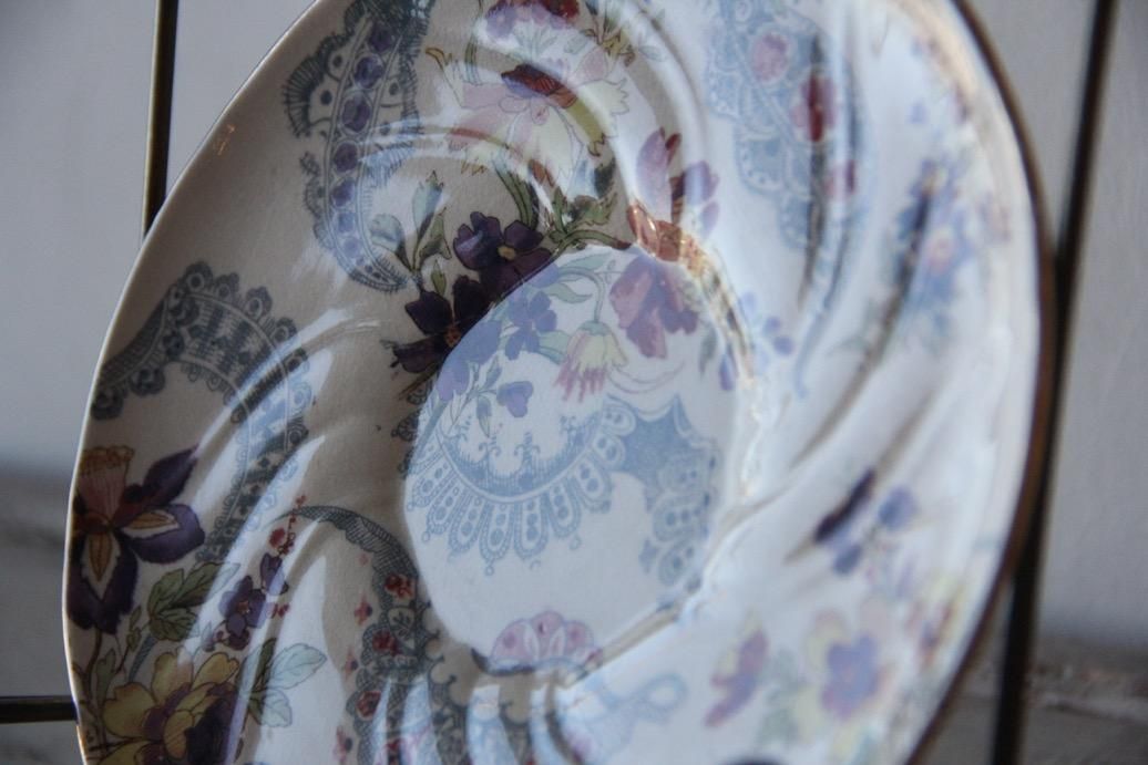 レース柄に小花の散りばめられたとても美しい絵柄のソーサーです