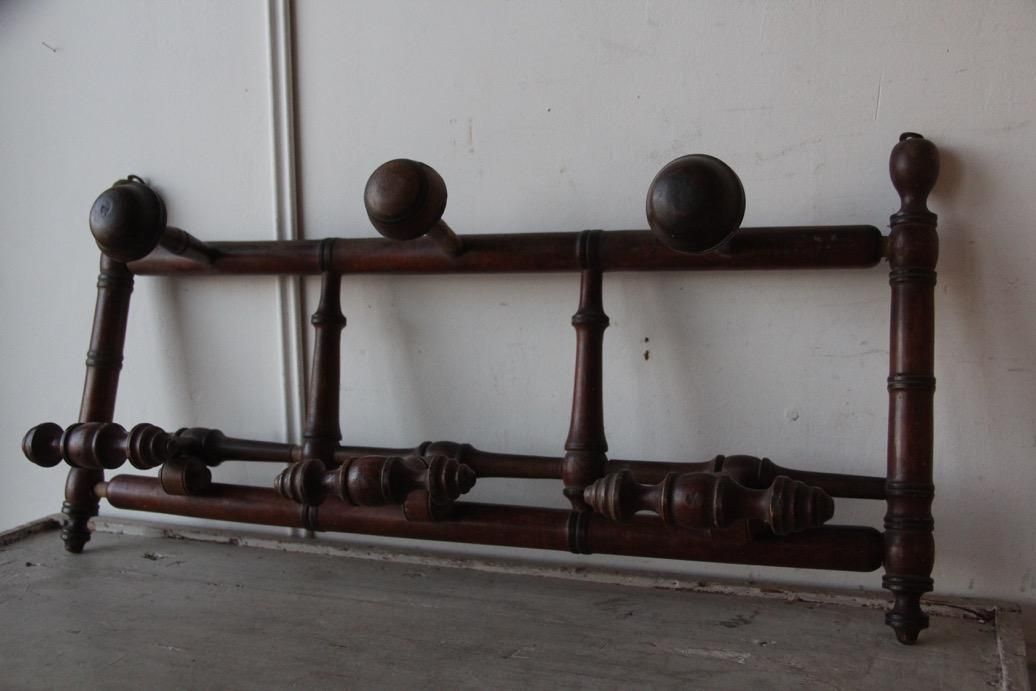 フランスアンティーク 木製 コートフック/ 取手6つ 折りたたみ式