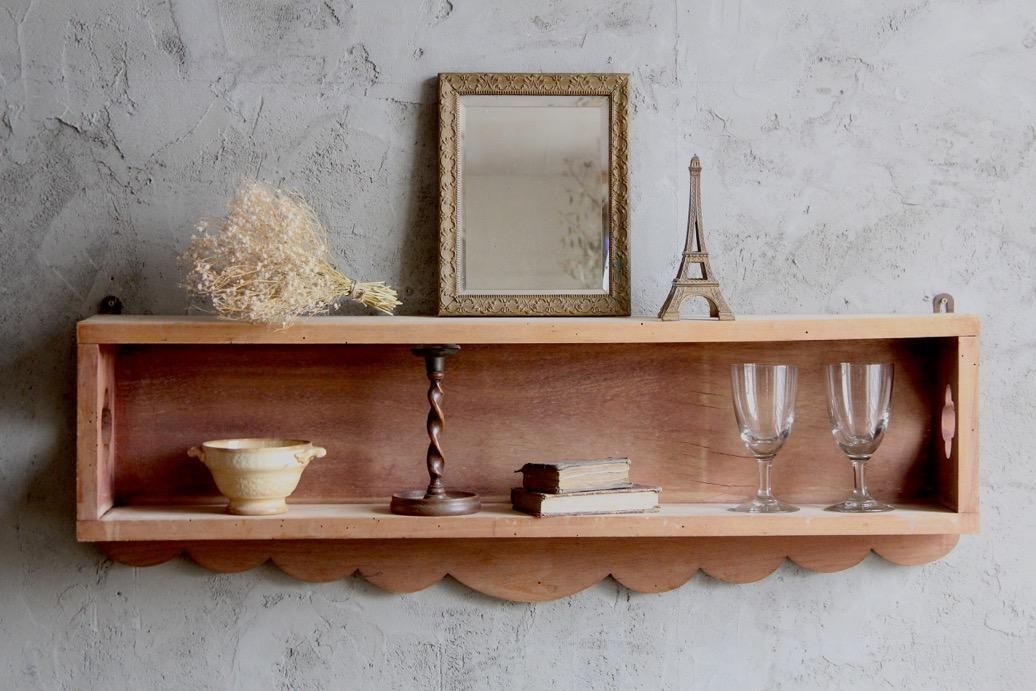 フランスで使われていたアンティークの木製ウォールシェルフ