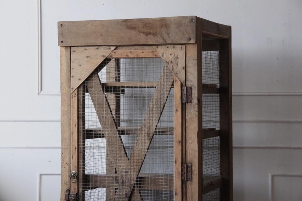 重厚な木材で作られたフレームの四方は金網で囲われ、中身を確認しやすく様々なものをディスプレイするには嬉しい作り