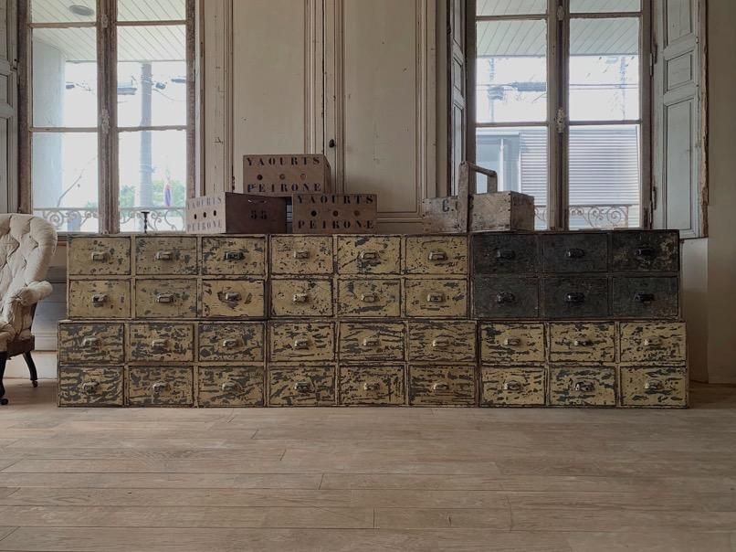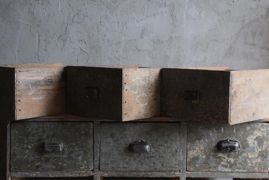 職人が工具や部品などの収納に使っていた実用的なアンティークドロワー