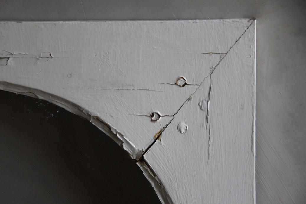 (特に内側下部の左右の木材の繋ぎ目付近)