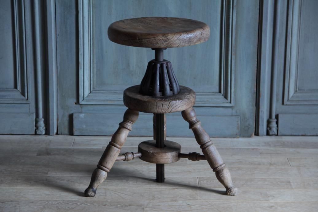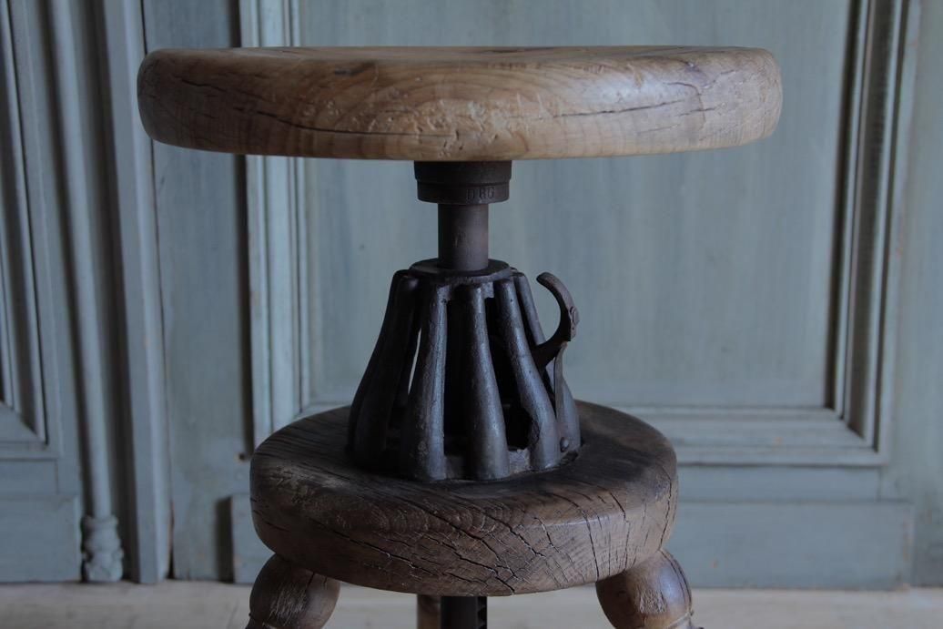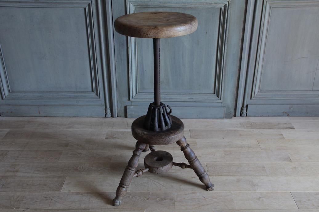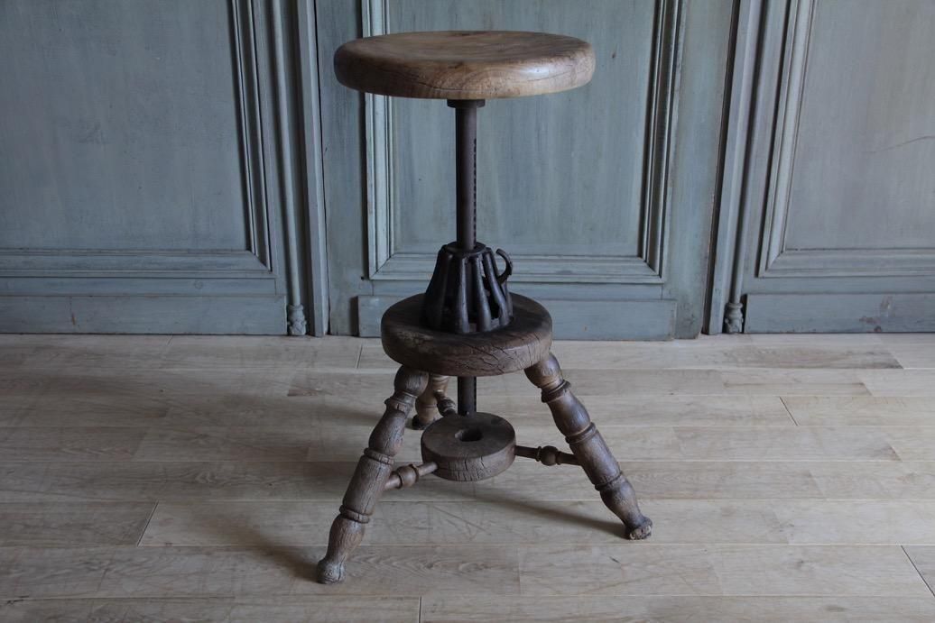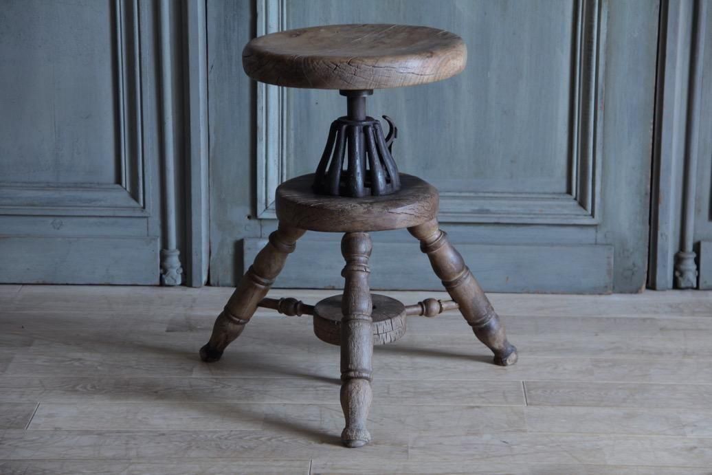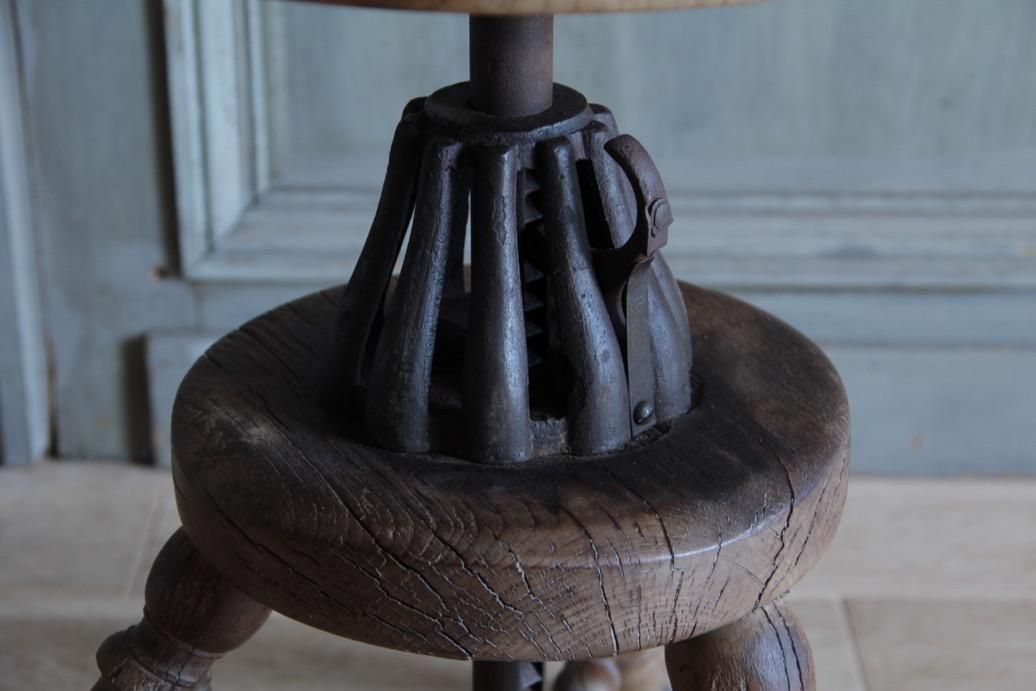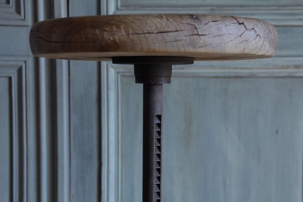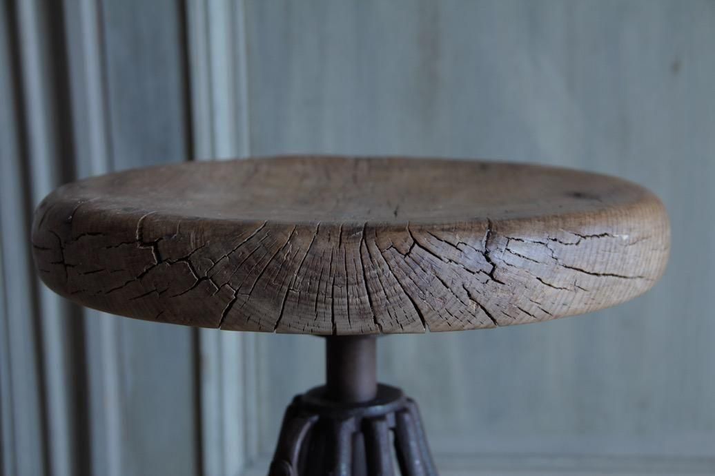 フランスで使われていたアイアンと無垢オーク材のコンビネーションが美しいアンティークのアジャスタブルスツール