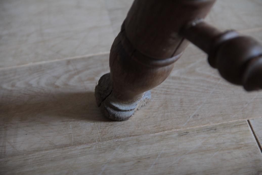 座面は厚みのあるオーク無垢材で長い年月を経て生まれた質感が唯一無二の表情を見せています。