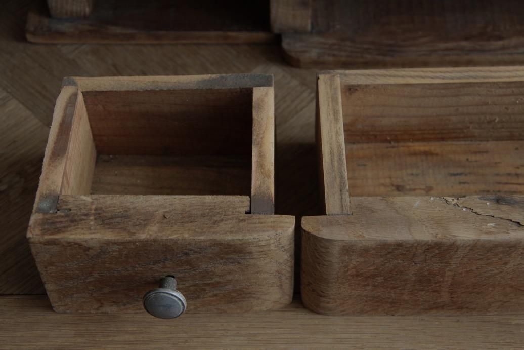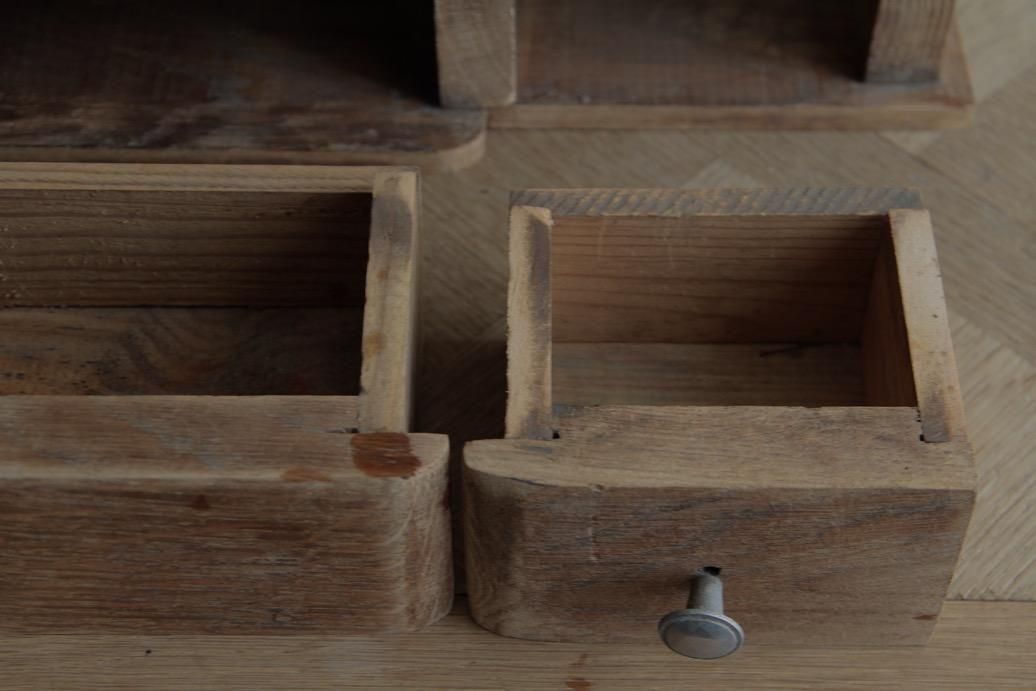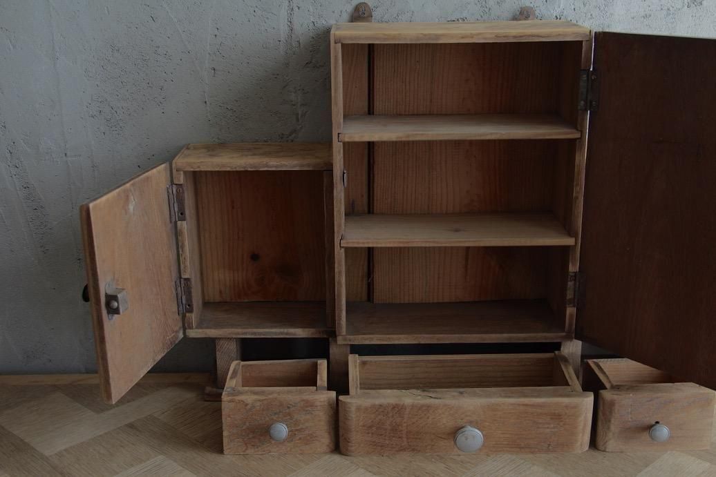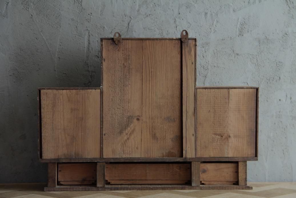 時を重ねた木肌の温もりと、素朴な佇まいが魅力のアンティーク・ウォールキャビネット