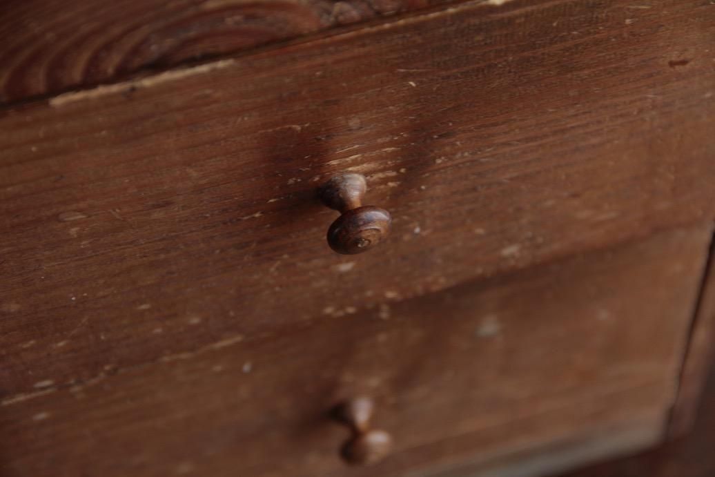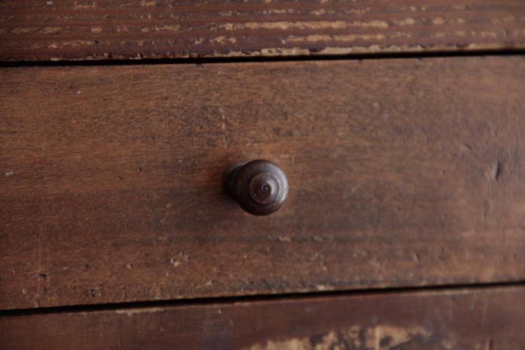 取手は丸いつまみで統一され、控えめながら愛らしい佇まいをつくり出しています