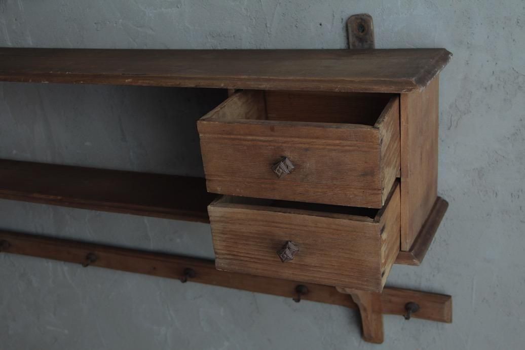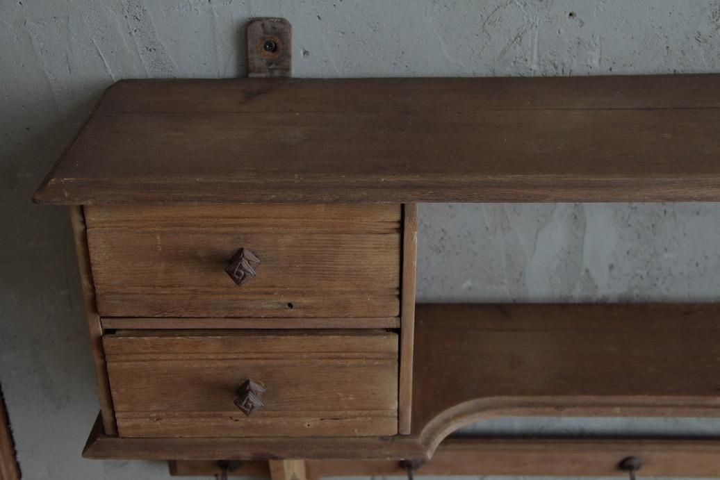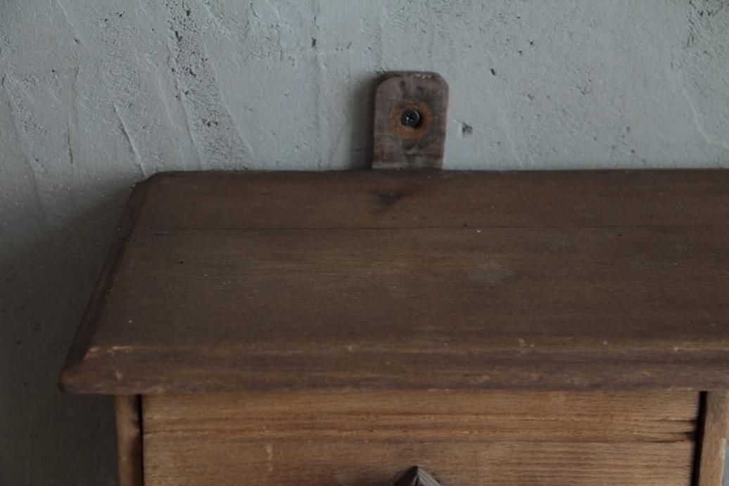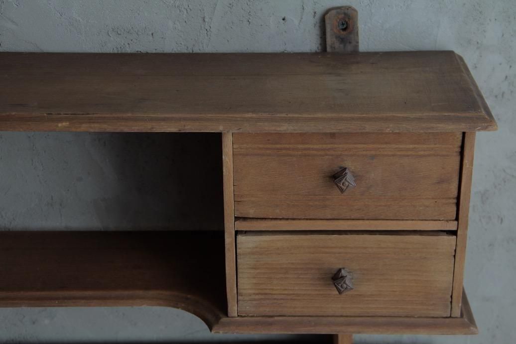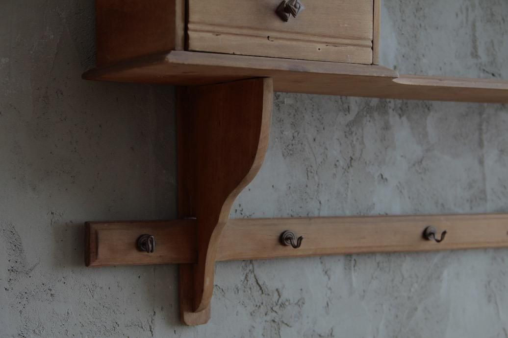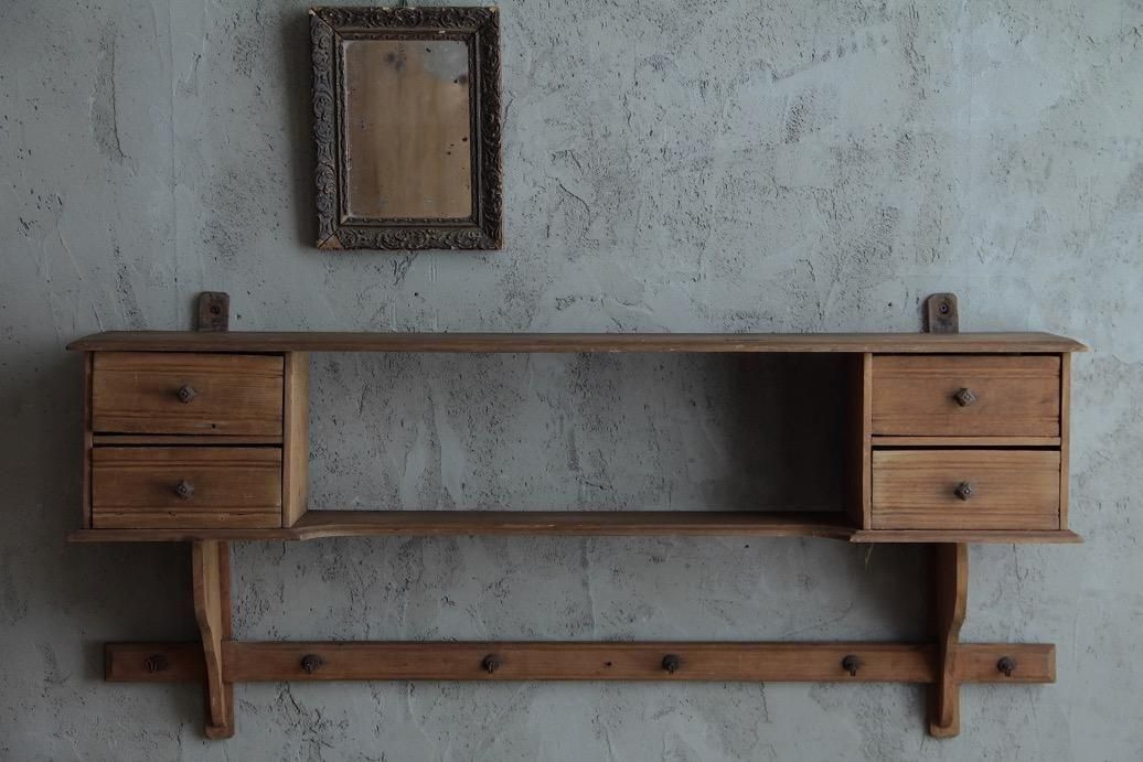 素朴な木の風合いが魅力のアンティークウォールシェルフ