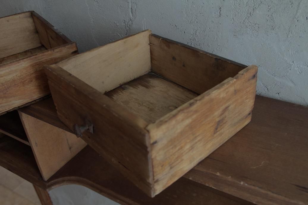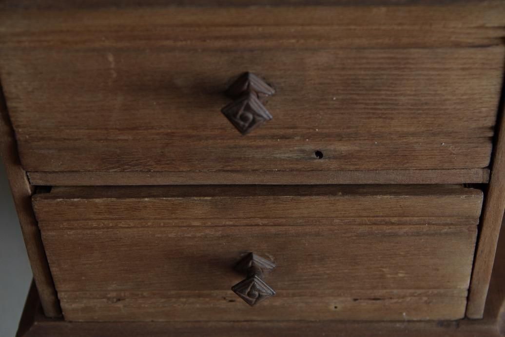 左右に小さな引き出しを備え、アクセサリーや文房具などの小物収納に最適です