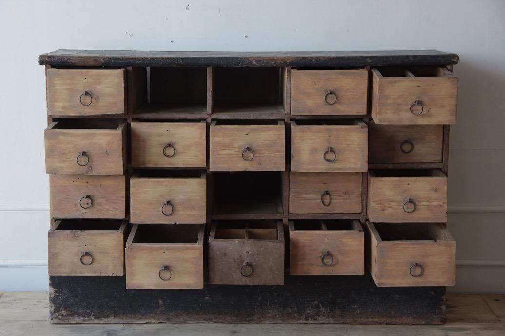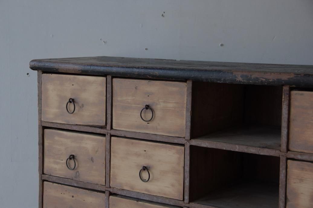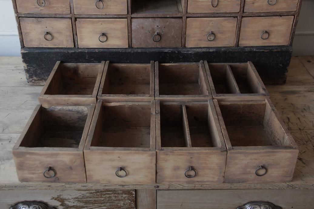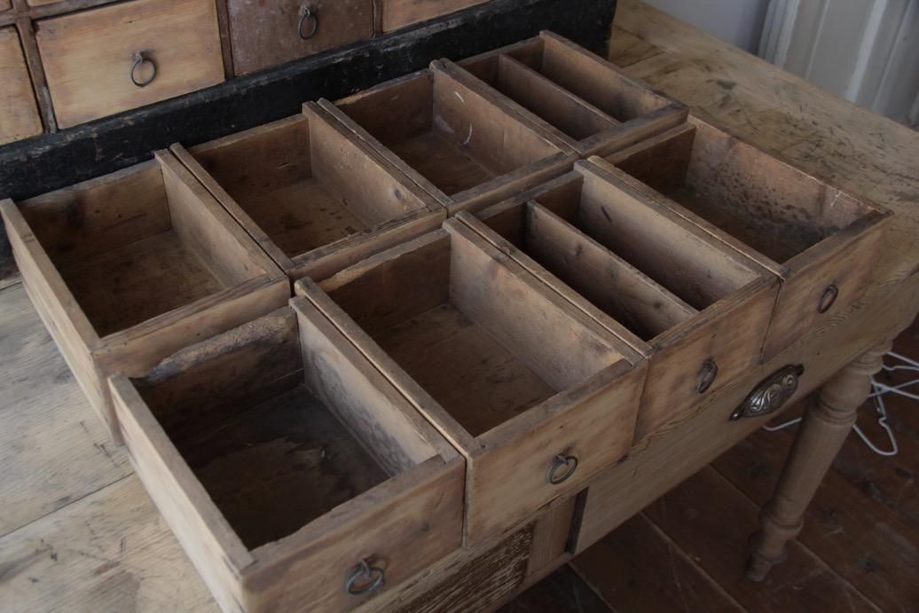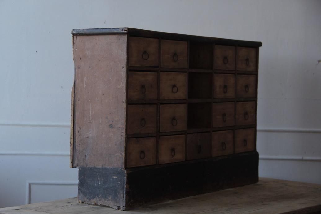 その数17にも及ぶ引き出しを備えたアンティークドロワー