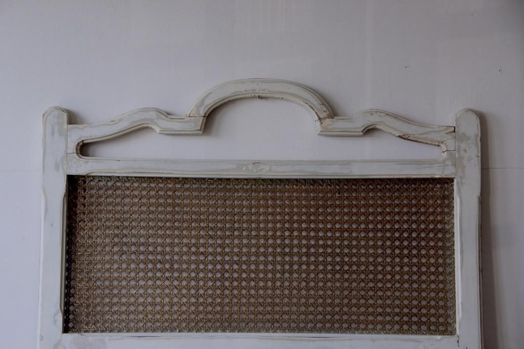フランスの古い邸宅で使用されていた、ケーン編みが印象的なウォールミラー付きのコンソール